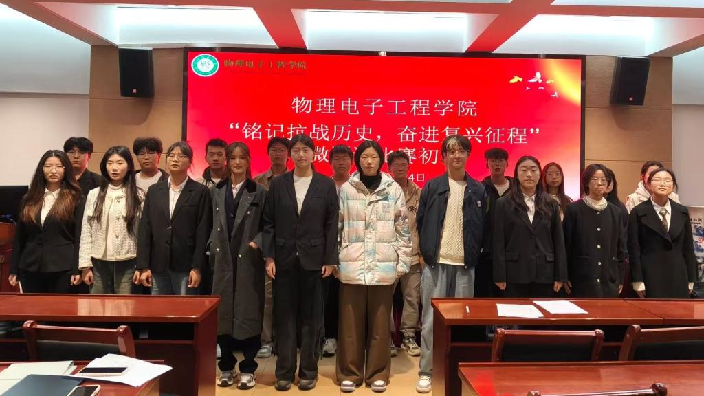 为深化爱国主义教育,引导青年学子铭记抗战历史,传承红色基因,10月24日,必赢官网于理科楼402会议室举办“铭记抗战历史,奋进复兴征程”微团课比赛初赛。本次活动由朱国政、汪璐璐主持,学生会主席团成员担任评委,2024级与2025级学生积极参加。
