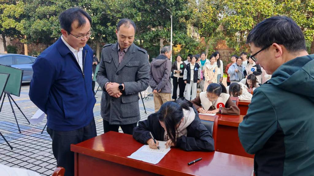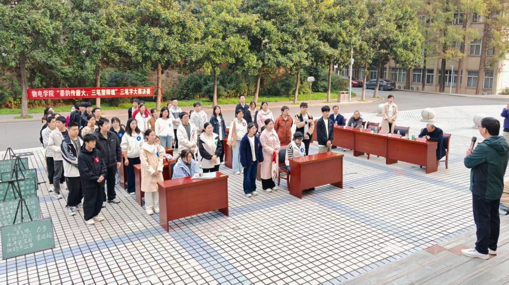 11月16日,必赢官网在理科楼前举办“墨韵传薪火,三笔塑师魂”三笔字大赛决赛。学院党委副书记张丽,副院长宋宣玉,冯一兵、陈新武、李炳中、孙金土等领导老师亲临现场并担任评委。