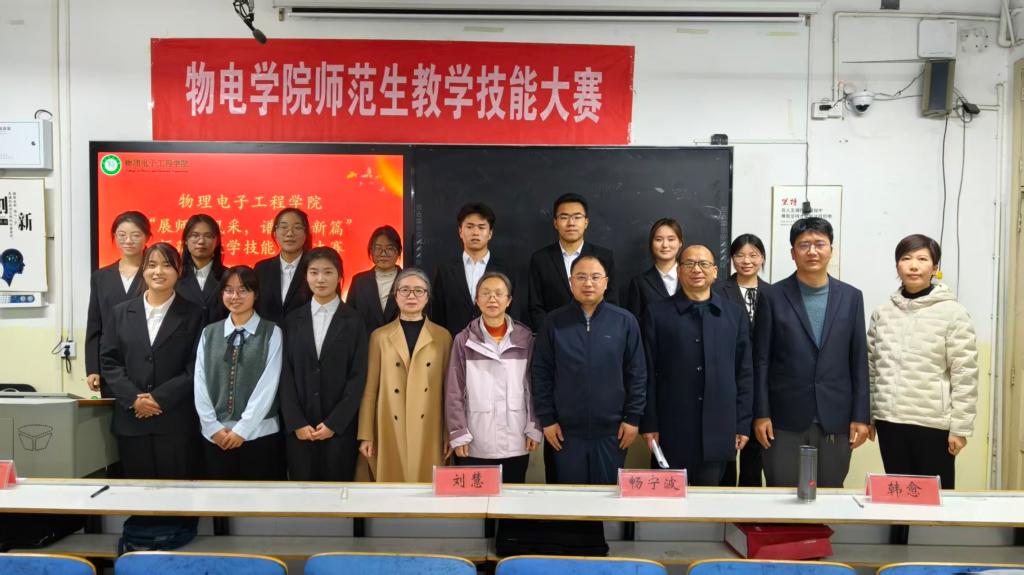 11月30日,必赢官网在教三205举办“展师者风采,谱育人新篇”师范生教学技能大赛决赛。必赢官网党委副书记张丽受邀出席,刘慧、黄文霞、李炳中、畅宁波、韩愈老师担任评委,2024级、2025级物理学专业学生积极参加。