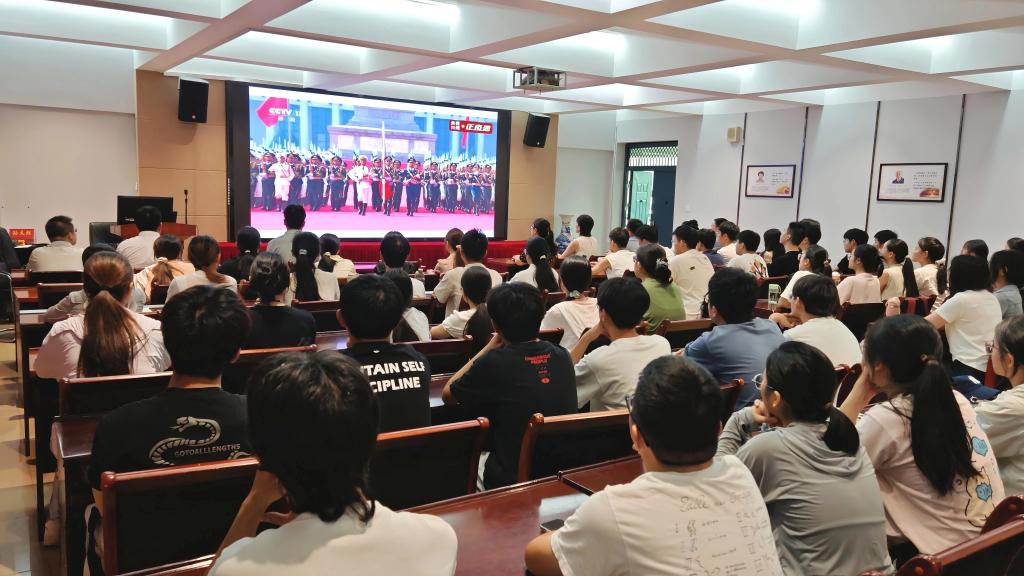阅兵观礼悟初心,砥砺奋进启新程。9月3日上午,学院师生齐聚一堂,共同观看纪念中国人民抗日战争暨世界反法西斯战争胜利80周年阅兵仪式直播。这场阅兵不仅带来了视觉上的震撼,更搭建起一座跨越时空的 “对话桥梁”—— 让师生们与抗战先烈隔空对话,与伟大民族精神深度共鸣。当威武的方阵迈着整齐的步伐通过检阅台,当先进的装备展示着国家实力时,同学们真切感受到祖国的繁荣强大,心中涌起强烈的民族自豪感与自信心。