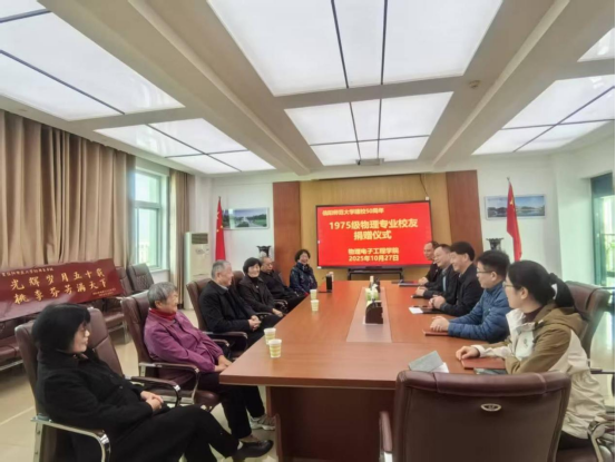 弦歌不辍五十载,桃李情深馈母校。10月27日,学院邀请1975级物理专业校友重返母校参加学校建校50周年系列活动。6位校友代表参加了在理科楼911会议室举行的座谈会暨捐赠仪式。座谈会由学院党委书记方明科主持。