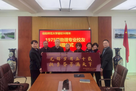 最后,1975级校友为学院捐赠了“光辉岁月五十载 桃李芬芳满天下”的匾额。这块匾额寄托着校友们对母校的感恩之情,见证了母校半个世纪的发展历程,表达了他们对母校育人成就的由衷赞叹,也彰显了我校第一届校友对母校的赤子之心。(撰稿 / 张彦飞 审核 / 张丽)